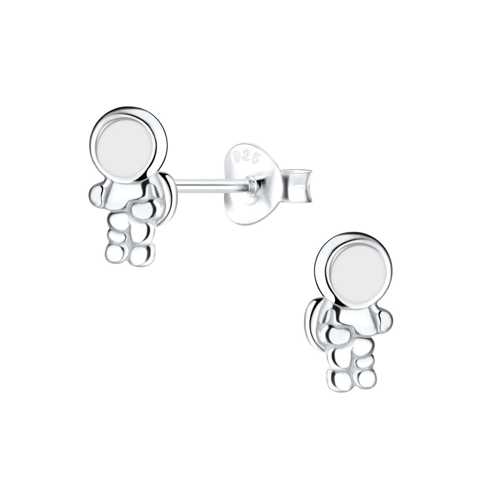 Astronautenoorbellen voor jongens, gemaakt van 925 zilver.