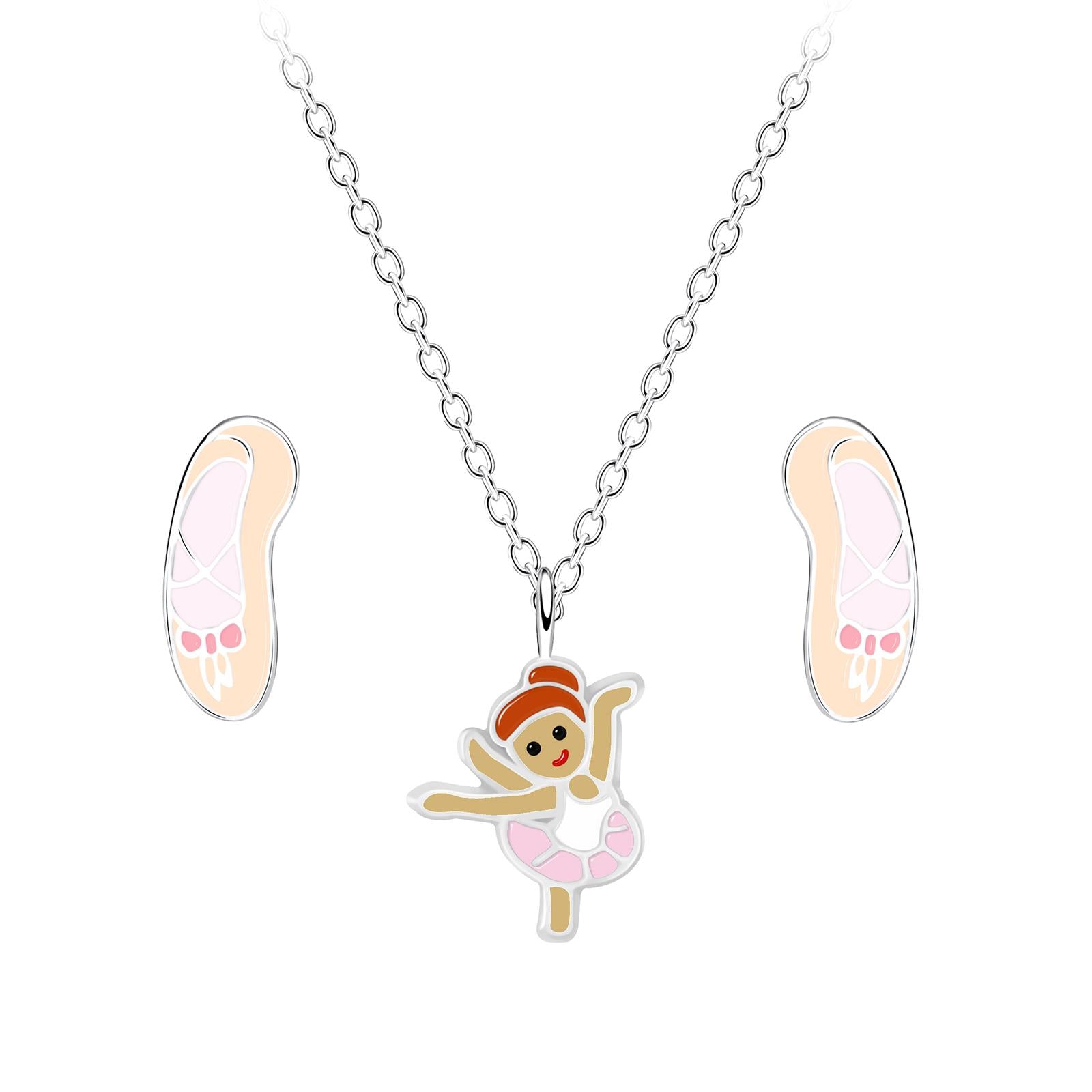 Kinderballerina ketting en oorbellen set van 925 sterling zilver