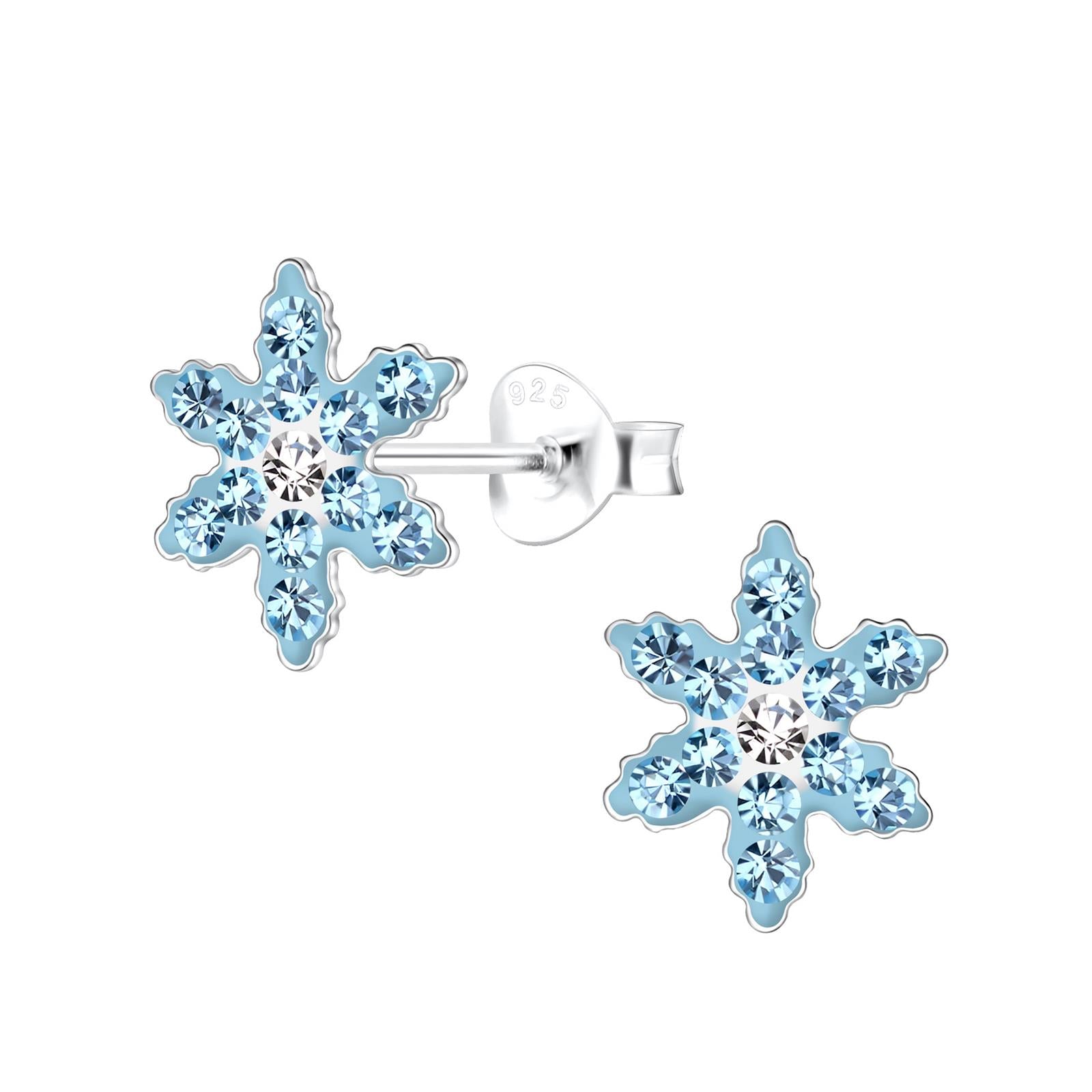 Kinderoorbellen in de vorm van een sneeuwvlok, gemaakt van 925 zilver.