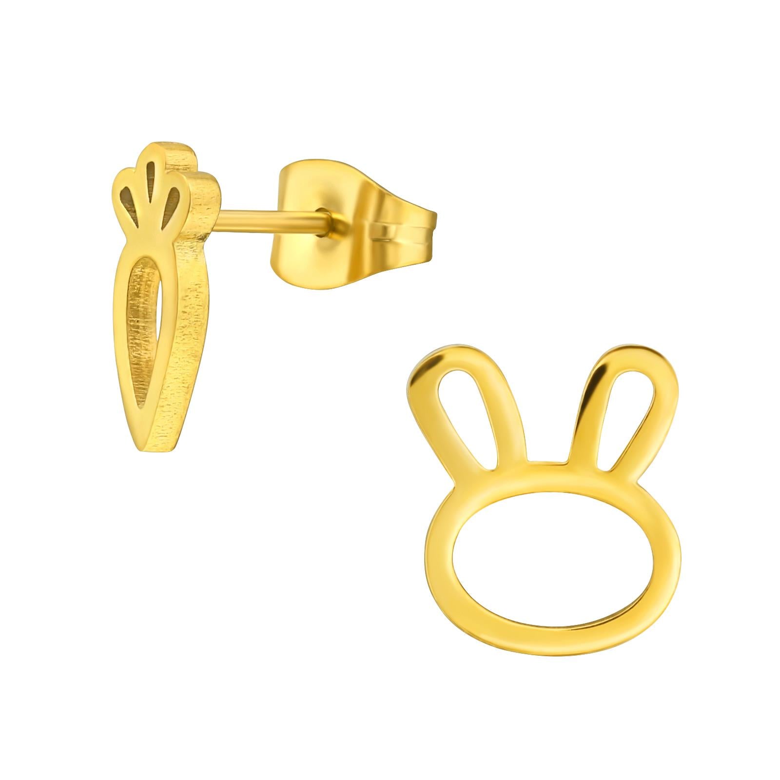 Konijnenoorbellen voor meisjes, gemaakt van chirurgisch staal.