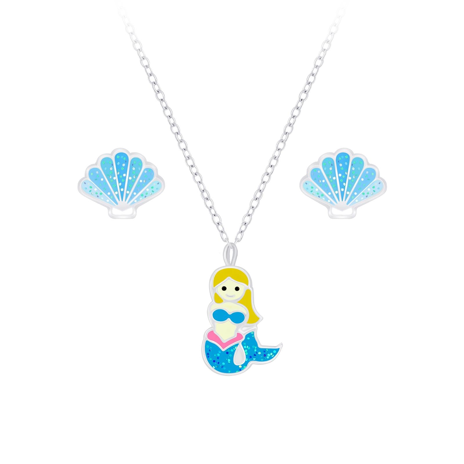 Kinder Halskette & Ohrringe Set Meerjungfrauen aus 925 Silber