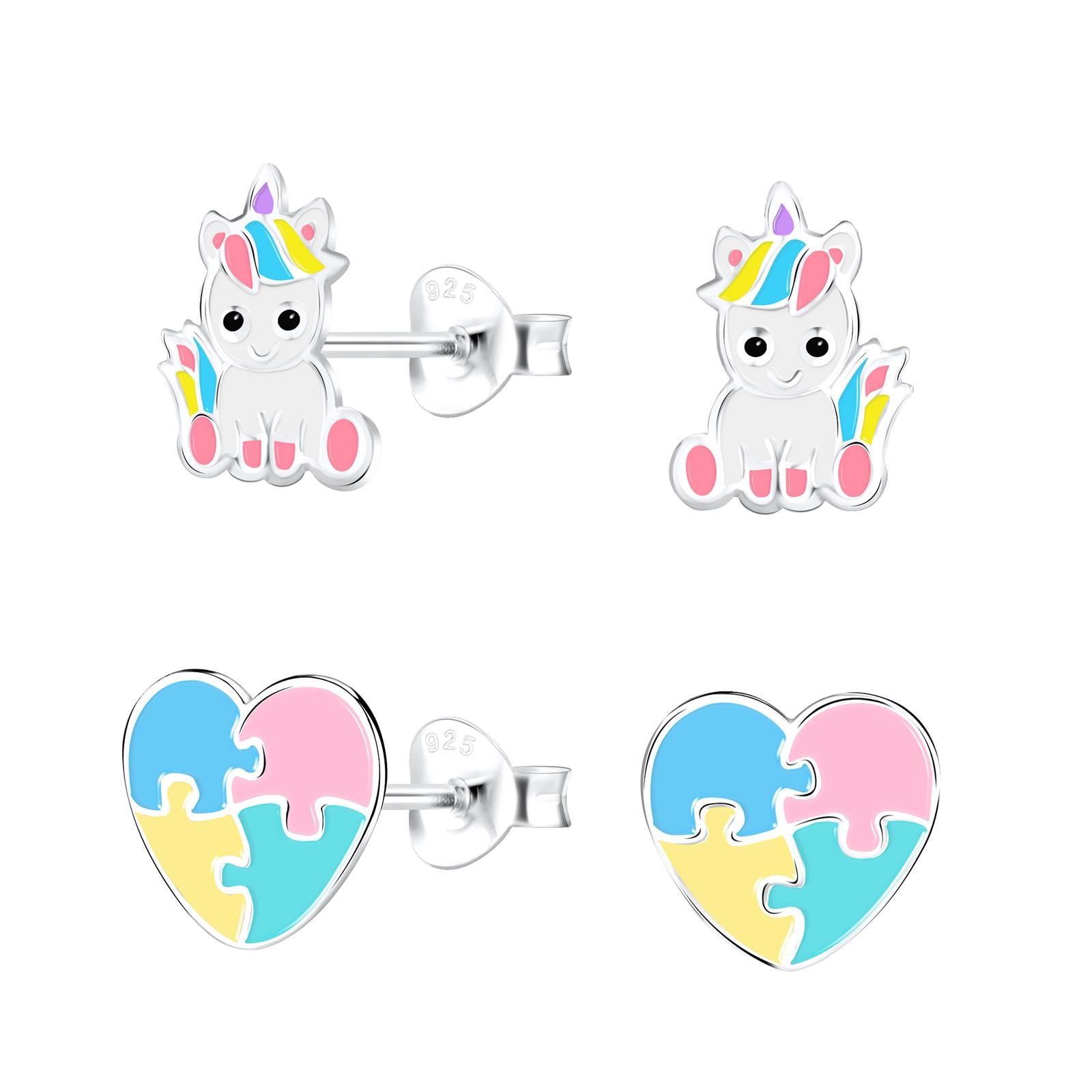 Kinder Ohrringe-Set Einhorn aus 925 Silber