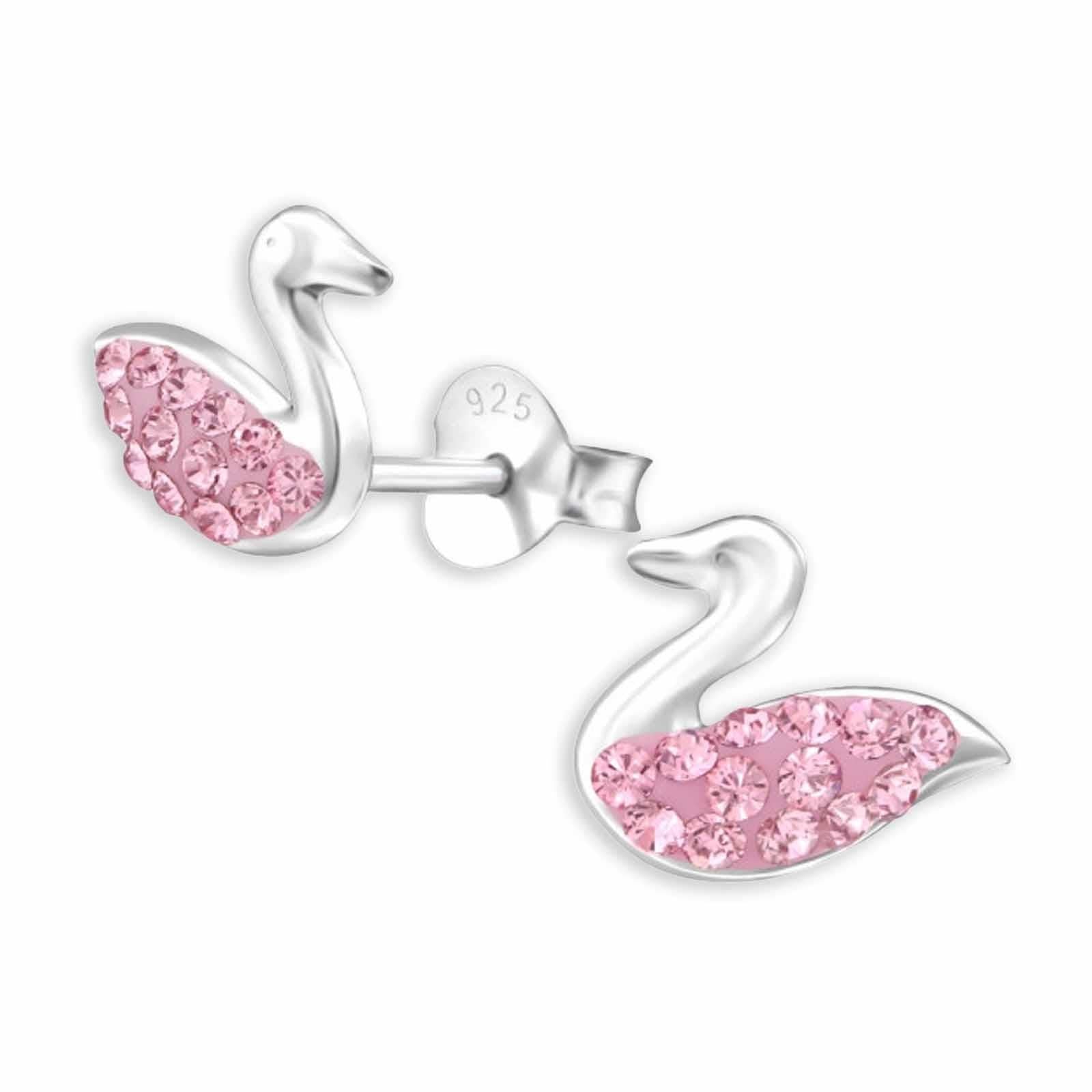 Kinder Ohrstecker Schwan Kristall aus 925 Silber