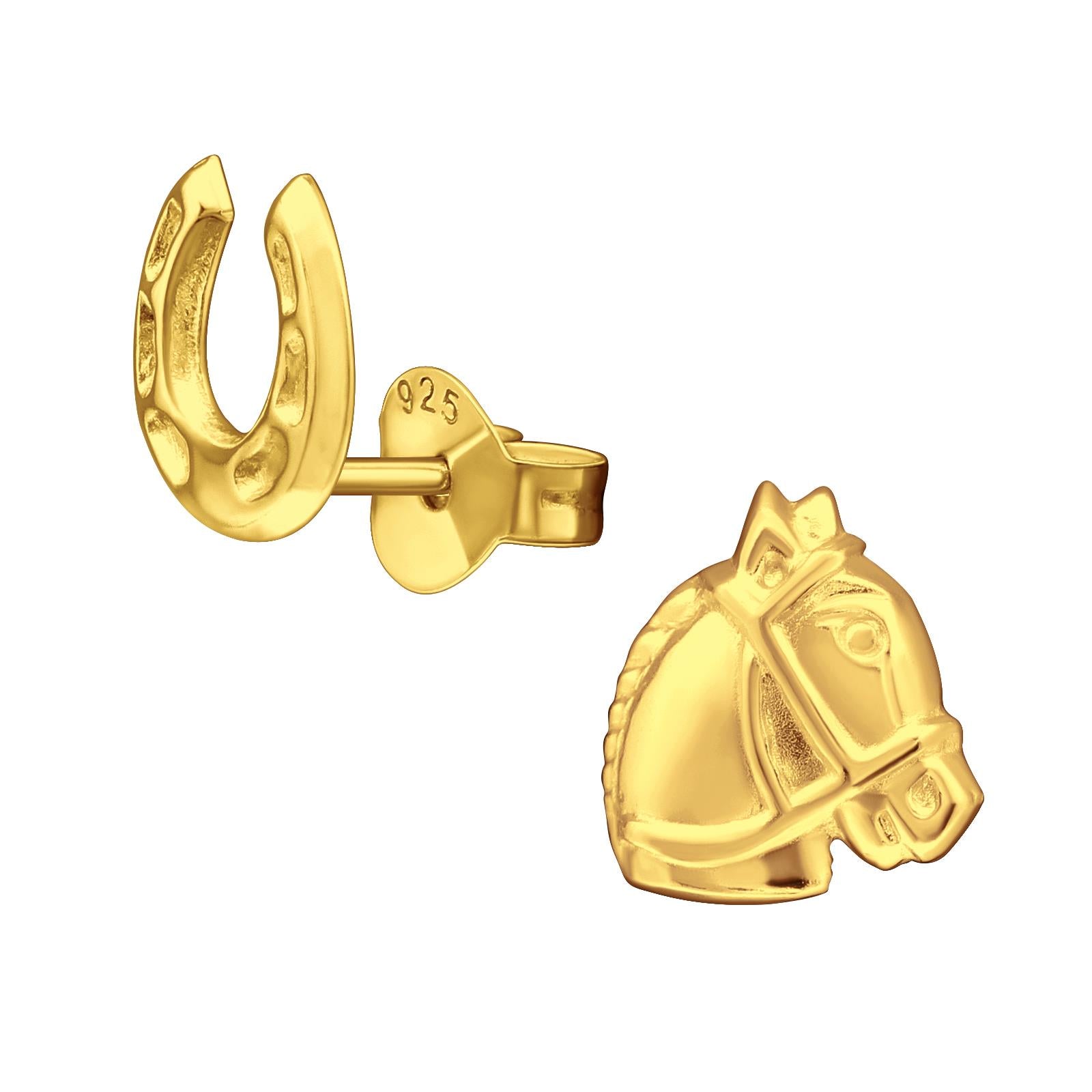 Mädchen Ohrringe Hufeisen & Pferd aus 925 Silber